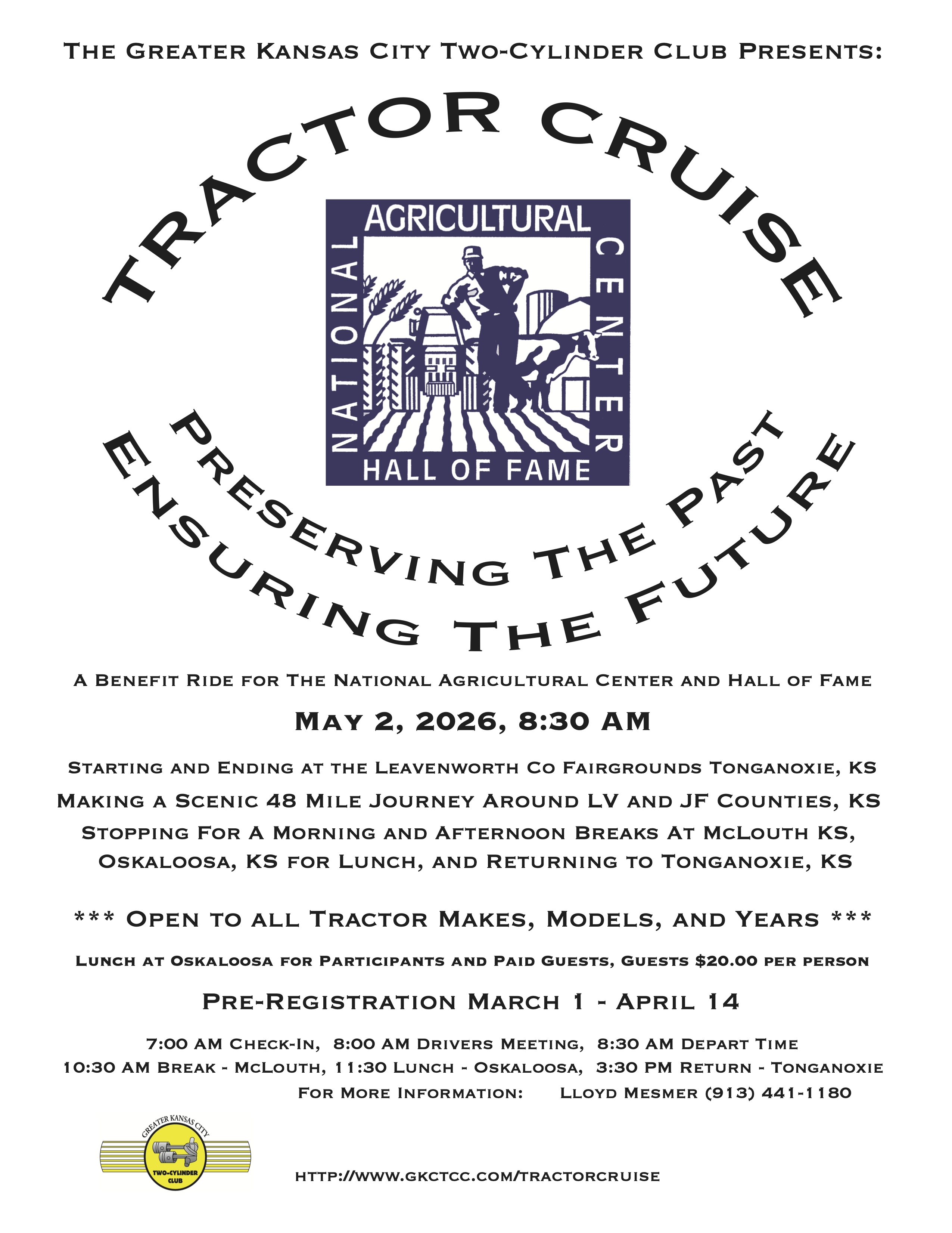The registration form can be downloaded at: http://www.gkctcc.com/tractorcruise/RegForm.htm.